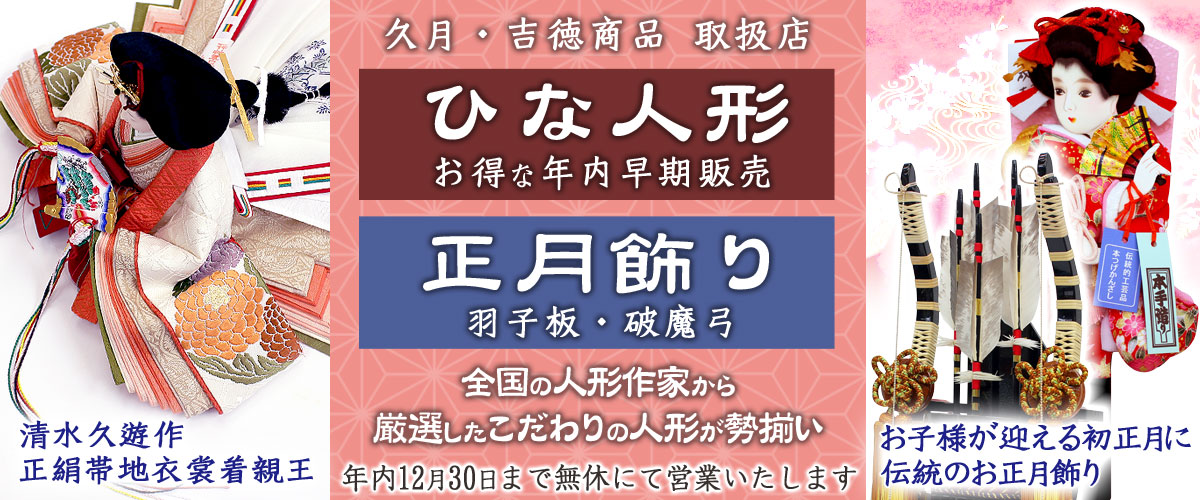 - 2026年のお正月に向けた【羽子板飾り・破魔弓飾り】および、新作【ひな人形】の販売を開始しております。