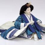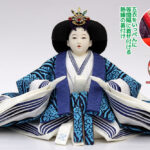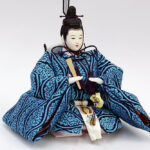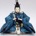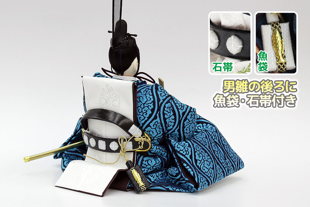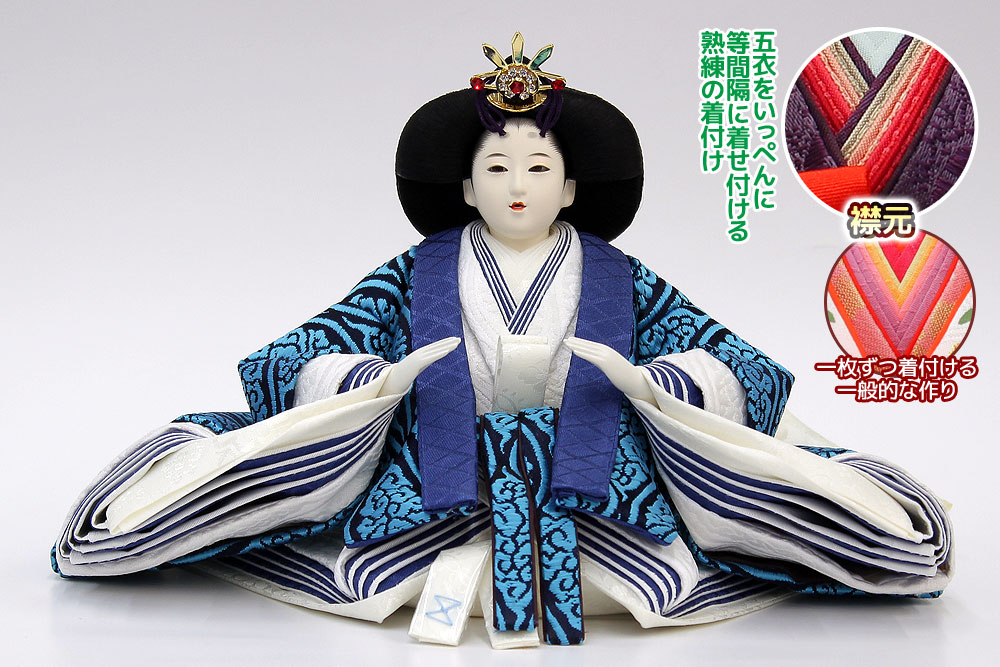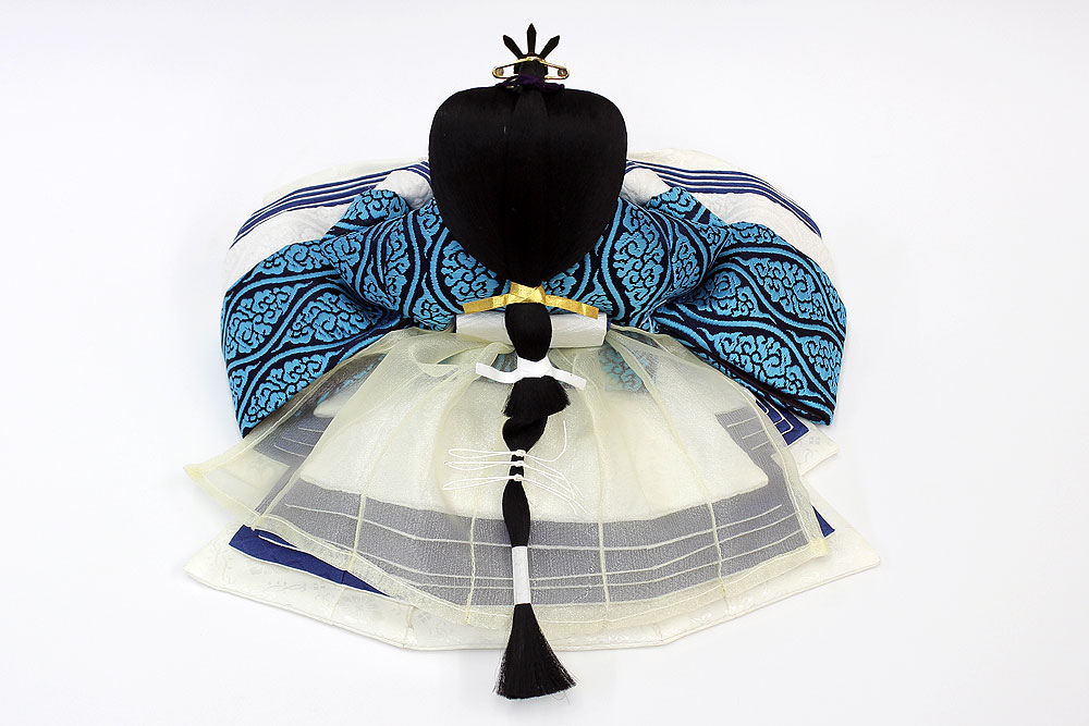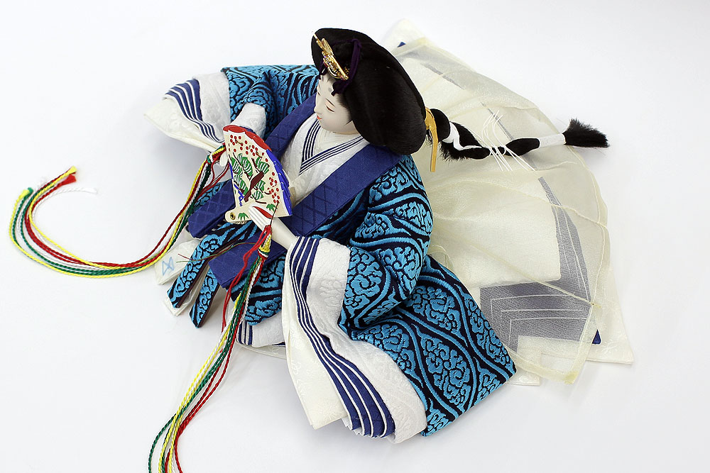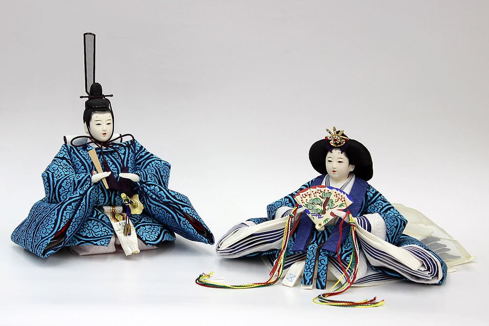 | 鮮やかな藍色が目を引く雲立涌文様の正絹衣裳をまとった親王のお値打ちセットです。