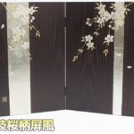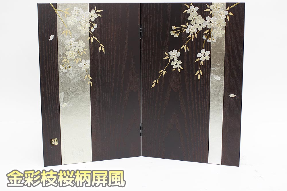 帯状の銀箔に金彩枝桜柄のオーク調収納箱とのセットです。